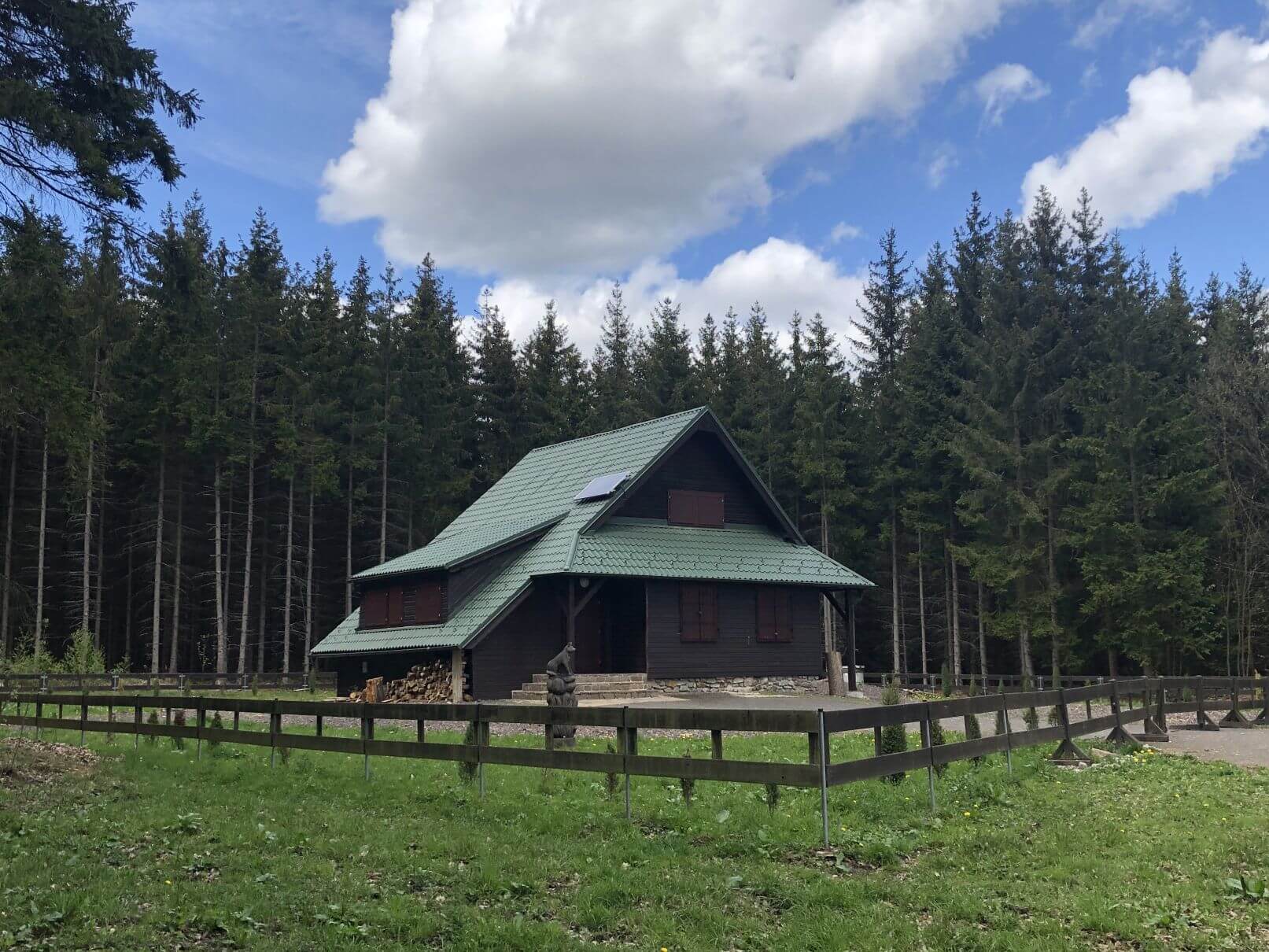 Cestou minete chatu Václavku a pomník výsadkářům československé paraskupiny.