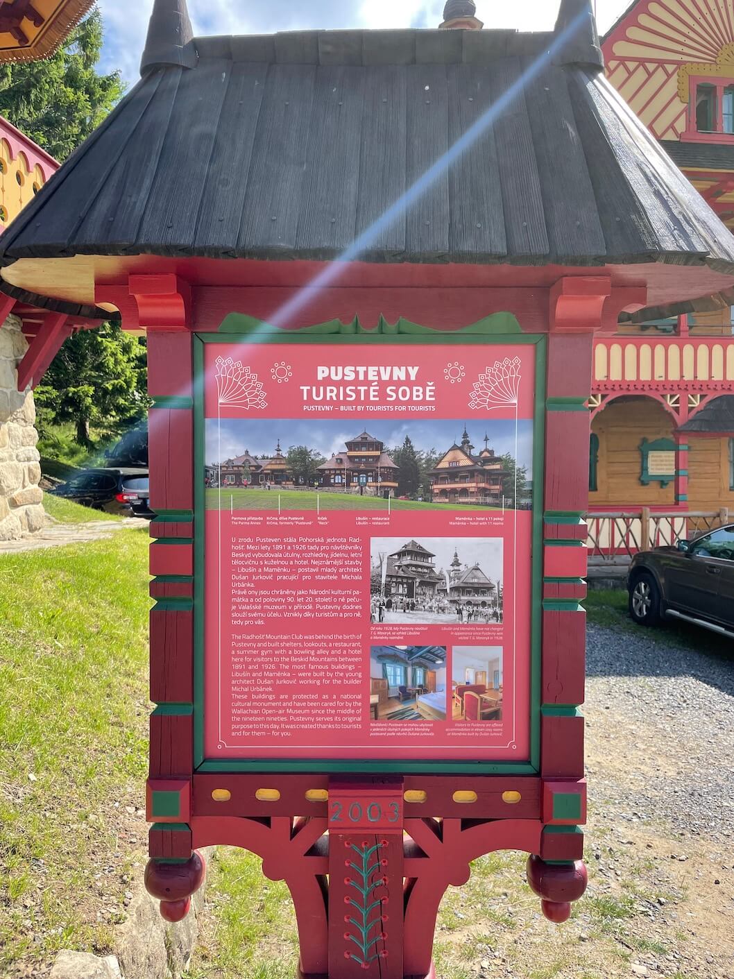 Auto jsme zaparkovali na parkovišti Pindula u silnice vedoucí z Rožnova pod Radhoštěm (zdarma). Na vrchol k Pustevnám jsme nechtěli jet lanovkou a tak jsme si našli turistickou stezku, která nás dovedla na Radhošť a poté dál okolo sochy Radegasta až na Pustevny.